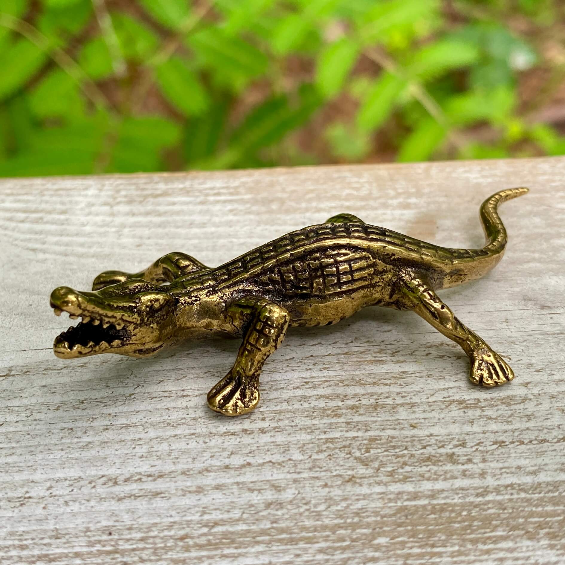 brass alligator, solid brass alligator, reptile figurine, alligator sculpture, handmade brass animal, swamp decor, alligator spirit animal, symbolic gift, brass paperweight, primal home decor, boho reptile art, mindfulness gift, handmade wildlife sculpture