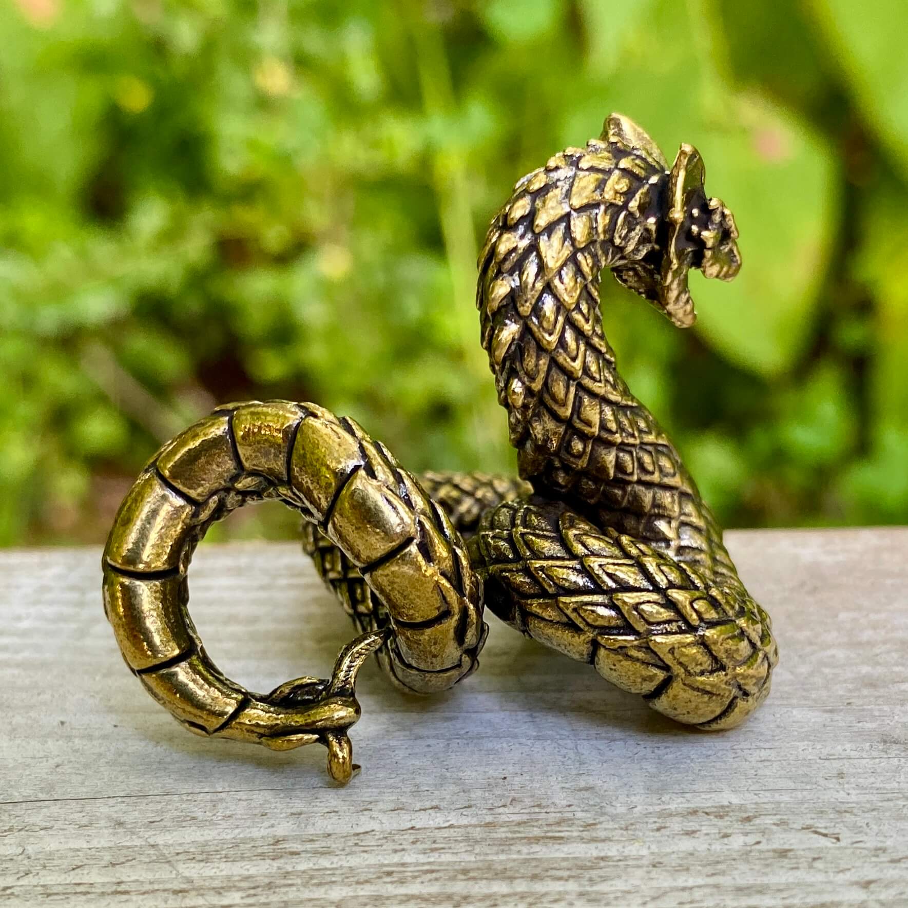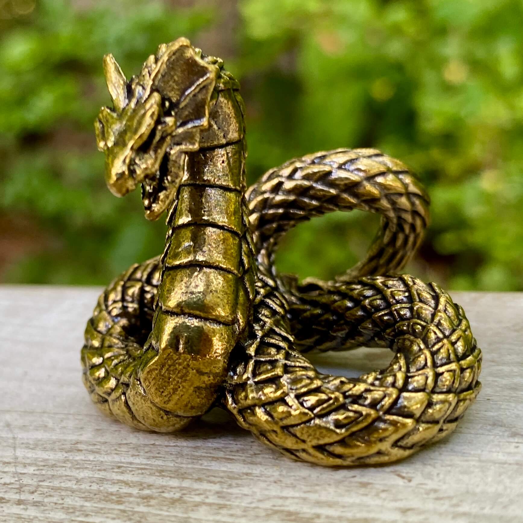 brass basilisk snake, solid brass snake, mythical figurine, basilisk sculpture, handmade brass animal, fantasy decor, serpent spirit animal, symbolic gift, brass paperweight, mystical decor, boho serpent art, mindfulness gift, handmade fantasy sculpture