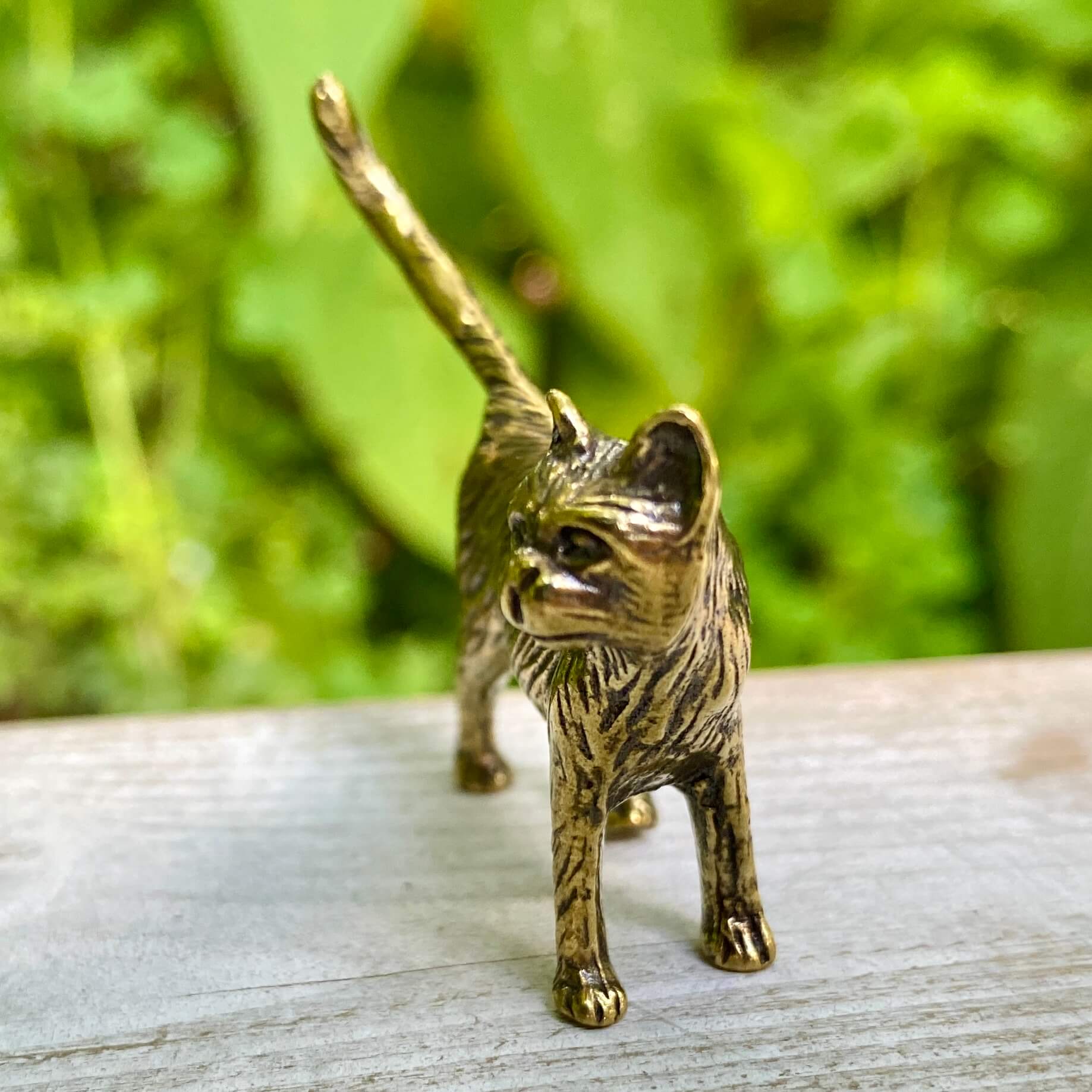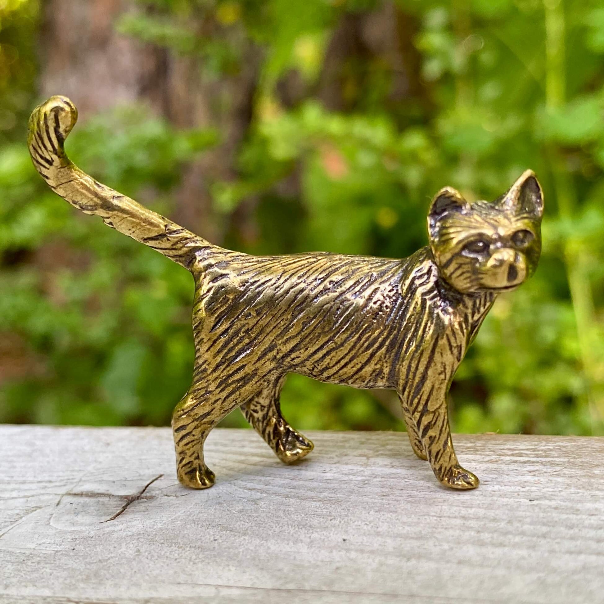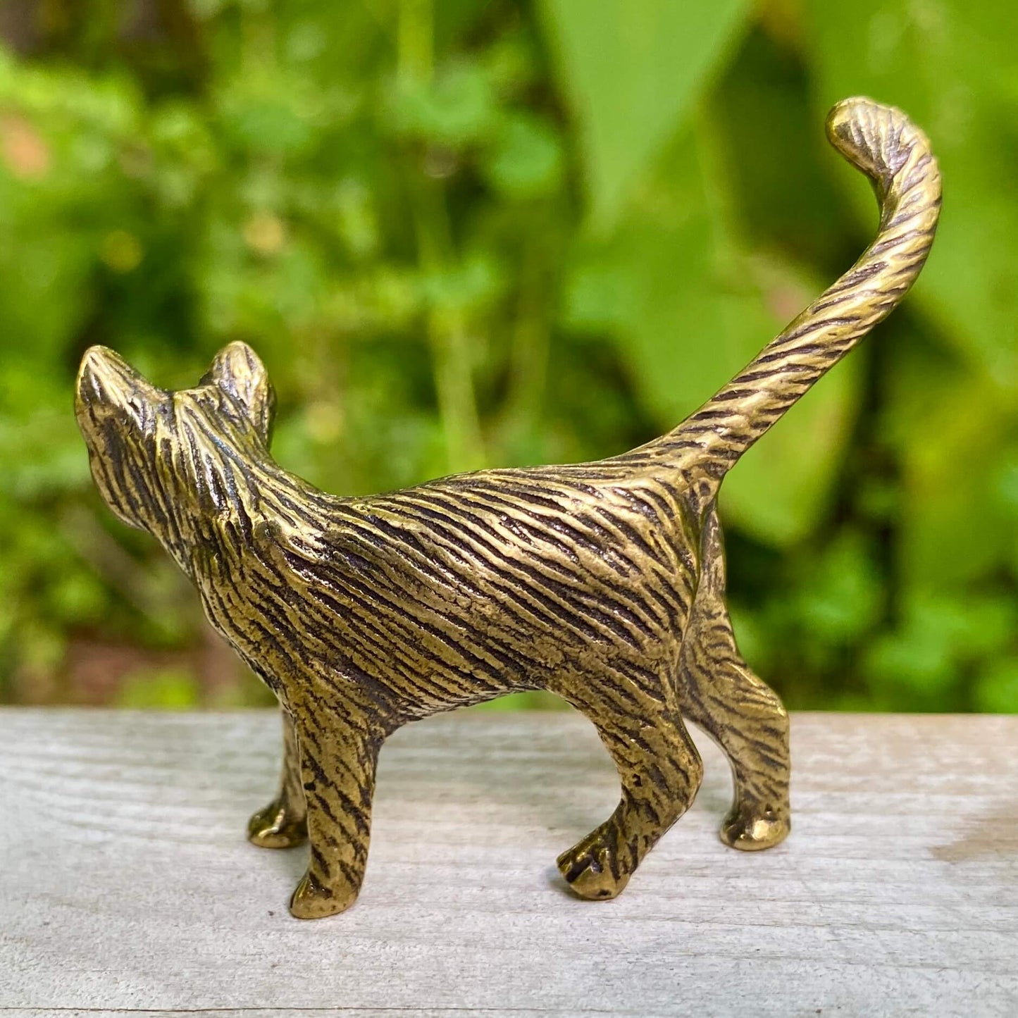 brass cat, solid brass cat, animal figurine, cat sculpture, handmade brass animal, mystical home decor, cat spirit animal, feline gift, symbolic sculpture, brass paperweight, boho cat decor, mindfulness gift, graceful cat art