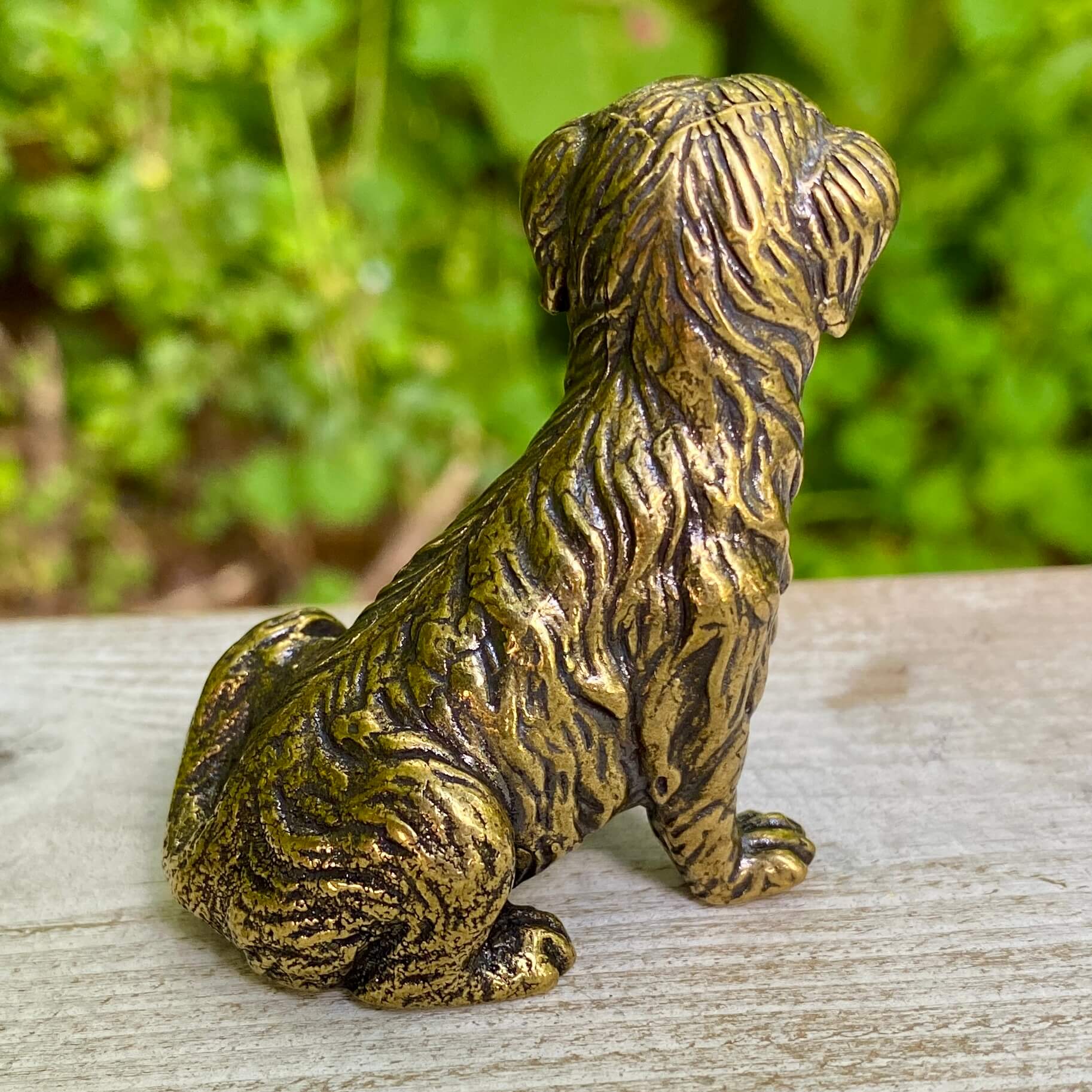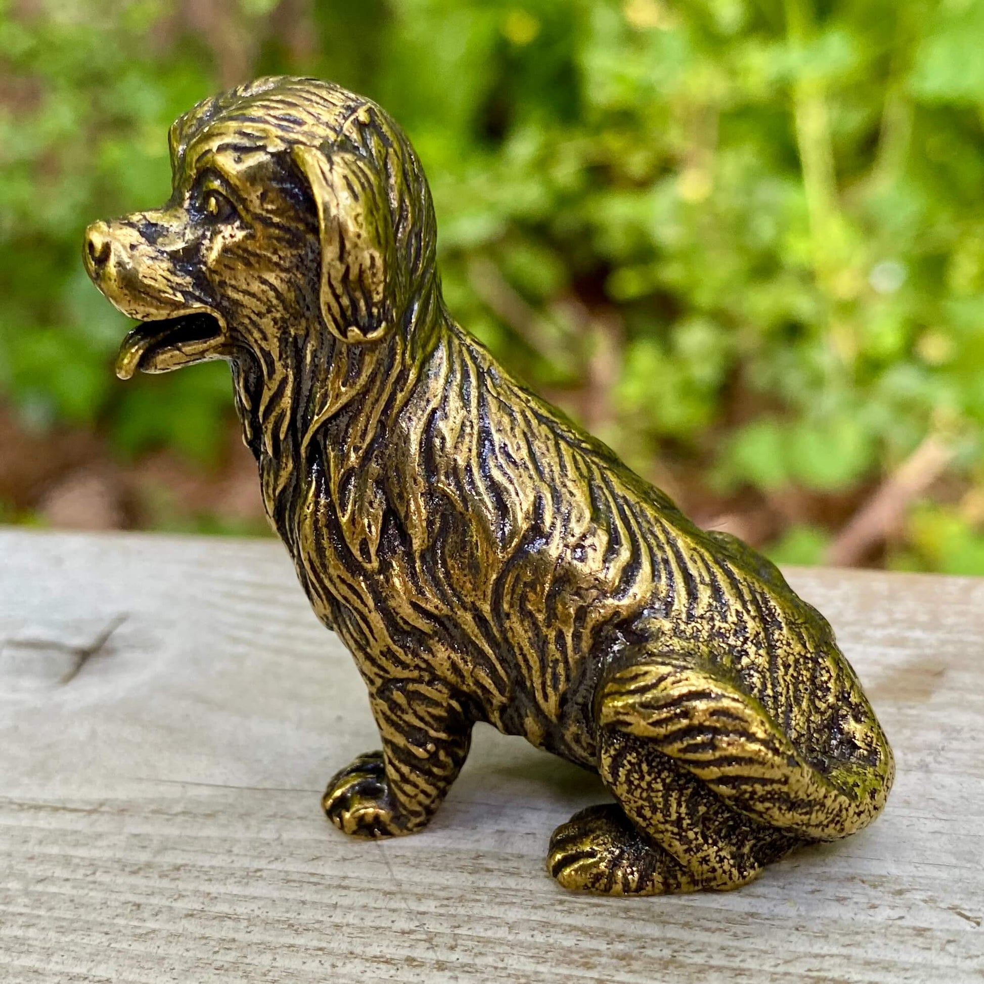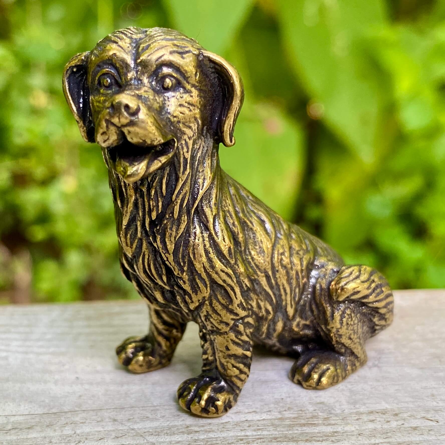 brass golden retriever, solid brass dog, golden retriever figurine, dog sculpture, handmade brass animal, pet decor, loyal dog gift, symbolic animal sculpture, brass paperweight, boho dog art, mindfulness gift, handmade pet sculpture