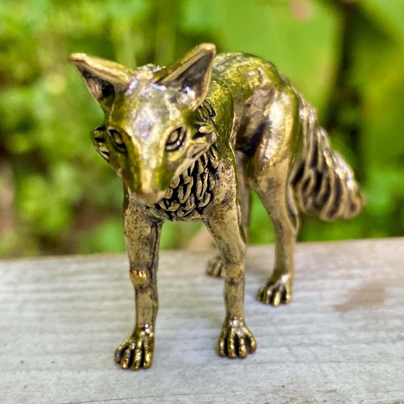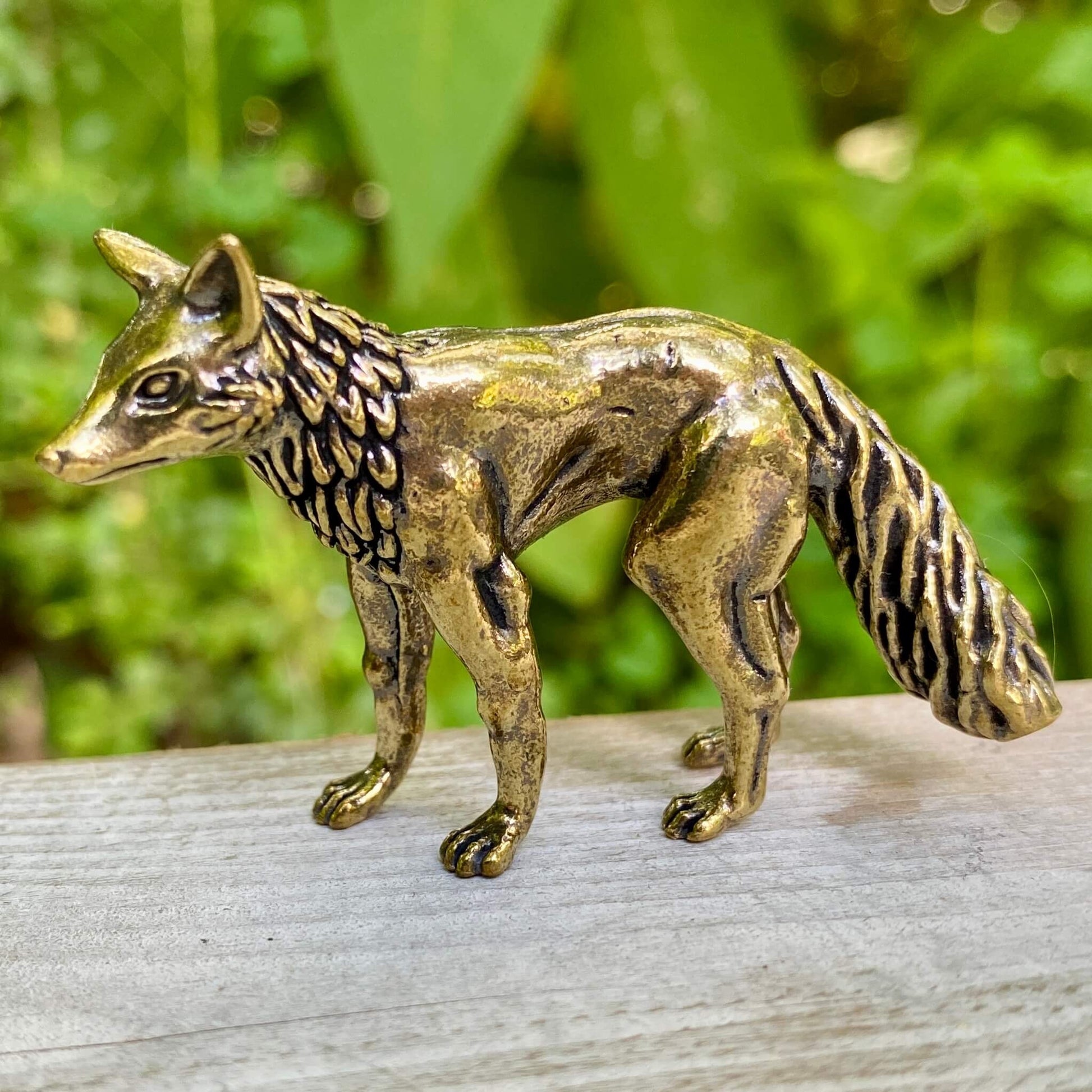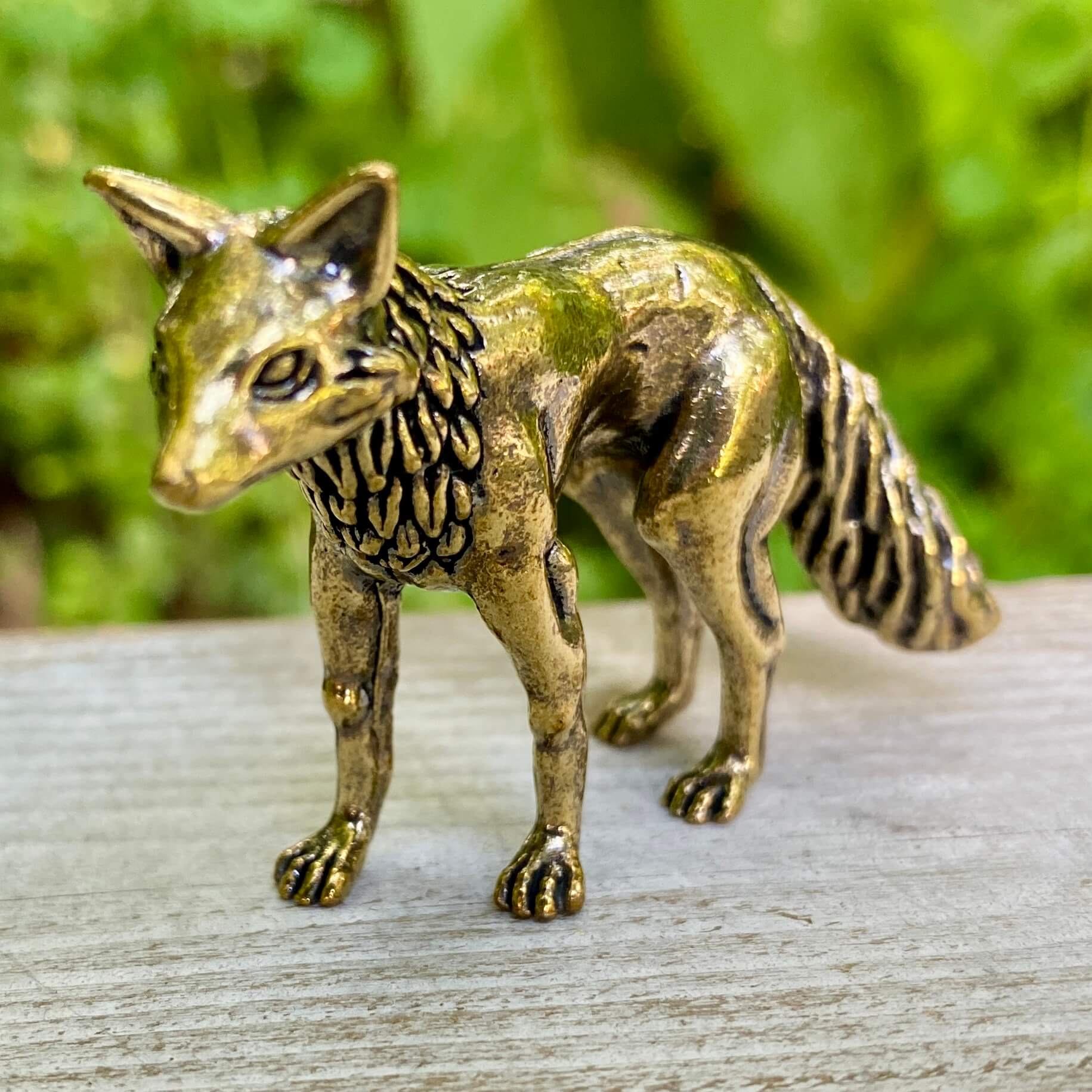 brass fox, solid brass fox, animal figurine, fox sculpture, handmade brass animal, woodland home decor, fox spirit animal, clever animal gift, symbolic sculpture, brass paperweight, boho fox decor, mindfulness gift, handmade fox art