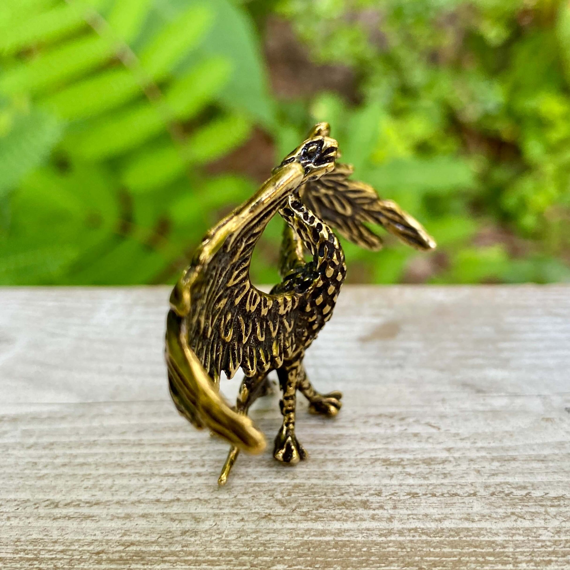 brass phoenix, solid brass phoenix, mythical figurine, phoenix sculpture, handmade brass animal, fantasy decor, phoenix spirit animal, symbolic gift, brass paperweight, mystical home decor, boho phoenix art, mindfulness gift, handmade fantasy sculpture